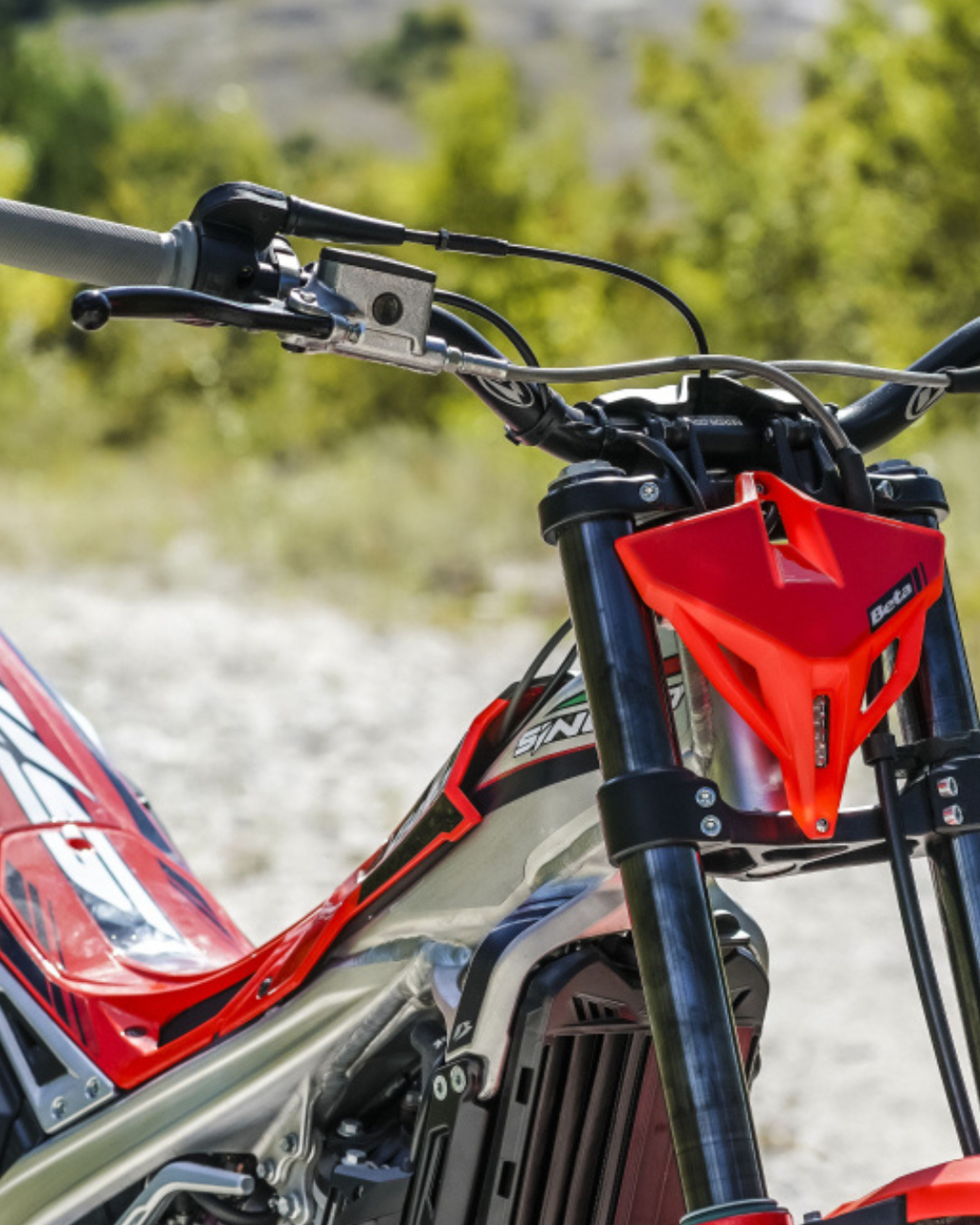 The SINCRO 300 2T is the flagship of the range, built for riders who crave big-capacity 2-stroke performance. It delivers impressive torque across all engine speeds, giving expert riders the confidence to tackle the most challenging trials and obstacles. The frame and engine are engineered for maximum control, while the compact, centralized rotating masses enhance handling, making this bike intuitive and easy to manage despite its class-leading performance. Like the 250, the 300 2T can be upgraded with the optional electric start kit, with the battery discreetly housed behind the headlight mask.